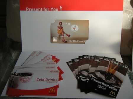 ・マックカフェ無料券10枚、