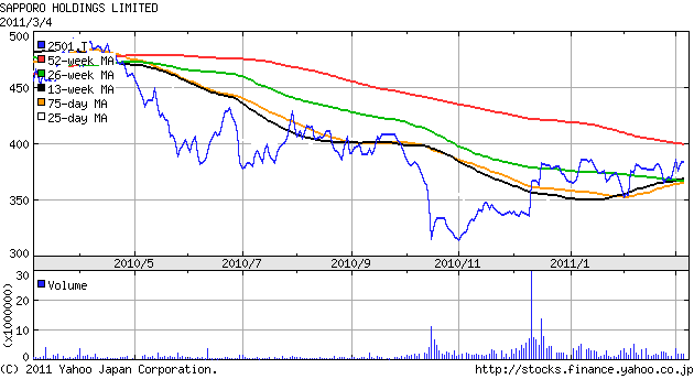 サッポロを386円(1,000株)で売却。明治を3,810円(100株)で購入。