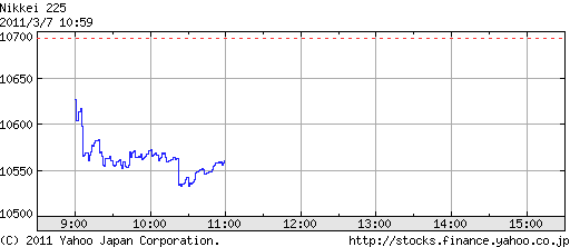★午前の取引が終了し、現在値 10,551.93円 前日比 -141.73円