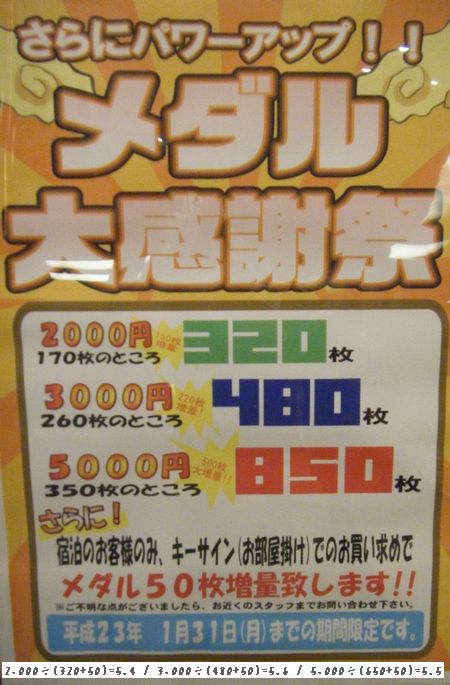 ★メダル貸出レートが増量されていて、うれしいサービスです。